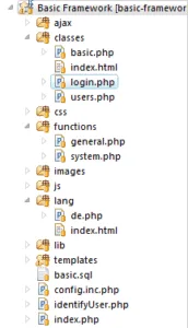 Also Einstellungen geändert und nun konnte es wirklich los gehen – nach zwei Tagen voller Problemen. Das Projekt hat derweil bereits eine Ordner- und Include-Struktur bekommen, das Login- und Registriersystem steht und auch der Multi-Language-Support ist geschrieben. Matze hat derweil ein paar nützliche Funktionen, die wir bereits in vergangenen Projekten benutzt hatten, gesammelt und neu geschrieben.