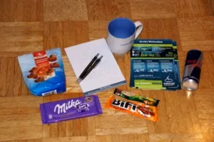 Da konnte ich einfach nicht nein sagen, und habe fünf Euro in diese kleine Überraschung investiert. Und so kam es, dass gestern der Postbote ein kleines Paket vorbei brachte. Darin waren neben eine Menge Styroporfetzen auch eine netcup Tasse (mit alten Logo), ein netcupt Block mit zwei netcup Stiften, ein paar netcup Flyer mit Gutscheincodes für Neukunden, eine Milk Vollmilch Schokolade, ein paar gefüllte Lebkuchen, eine BiFi, ein Jacobs Kaffee und ein Redbull. Beide letzeren Sachen werden schön verteilt, denn das ist ja bekanntlich nicht mein Ding 😉